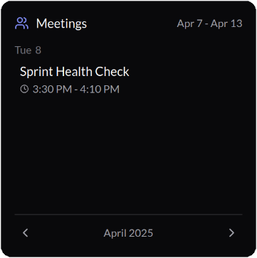 - Next Meeting Focus: Displays only your next upcoming meeting, emphasizing immediate engagements.